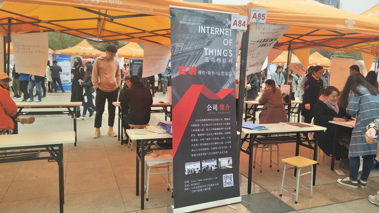 招聘會(huì)現(xiàn)場(chǎng)人頭攢動(dòng),山東迅鳴物聯(lián)網(wǎng)科技有限公司在眾多企業(yè)中脫穎而出,得到眾多學(xué)生圍觀垂詢。在為期兩天的招聘會(huì)活動(dòng)中,迅鳴物聯(lián)網(wǎng)共收到有效簡(jiǎn)歷160余份,現(xiàn)場(chǎng)面試63人。很多學(xué)生對(duì)物聯(lián)網(wǎng)行業(yè)非常感興趣,并認(rèn)為物聯(lián)網(wǎng)十分有發(fā)展?jié)摿Α?/p>