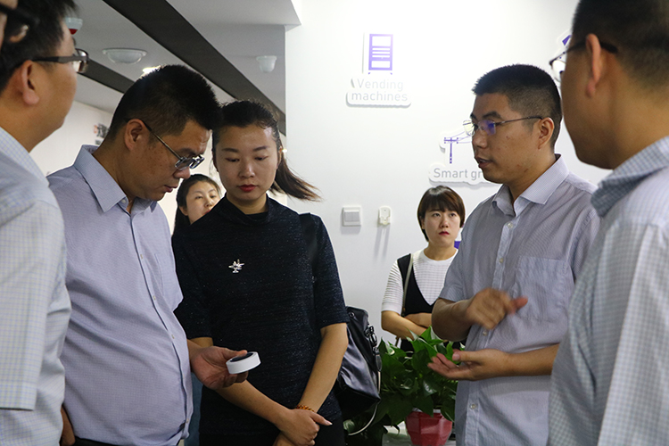 于總先為領(lǐng)導(dǎo)們?cè)敿?xì)介紹了公司的發(fā)展情況及業(yè)務(wù)范圍,而后拿出公司最新上市的產(chǎn)品“物聯(lián)網(wǎng)溫濕度計(jì)”及“感應(yīng)夜燈”,親自為領(lǐng)導(dǎo)們演示并講解產(chǎn)品的技術(shù)特點(diǎn)與優(yōu)勢(shì),并重點(diǎn)講述了迅鳴自行搭建的物聯(lián)網(wǎng)平臺(tái)的運(yùn)行情況。李總工程師對(duì)迅鳴的產(chǎn)品十分感興趣,拿在手上仔細(xì)地觀察并體驗(yàn),對(duì)產(chǎn)品使用的技術(shù)、應(yīng)用場(chǎng)景等提出疑問,于總都一一解答。
