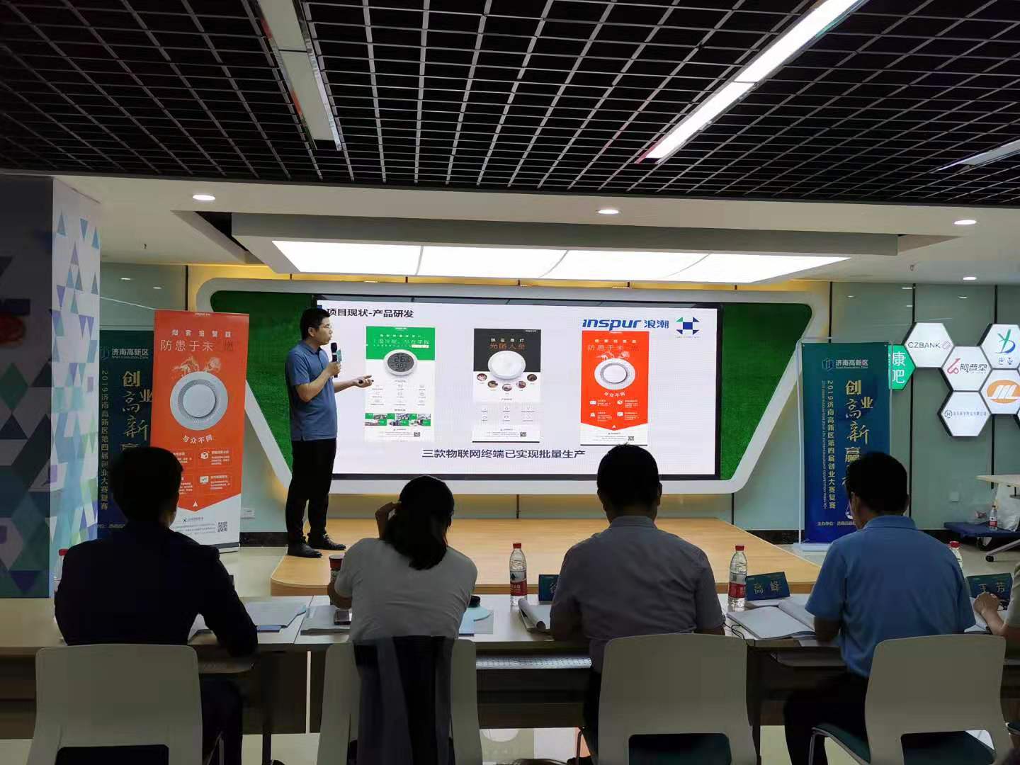 9月17日,由濟(jì)南高新區(qū)社會(huì)事務(wù)局主辦的濟(jì)南市高新區(qū)第四屆創(chuàng)業(yè)大賽復(fù)賽在高新區(qū)政務(wù)服務(wù)中心拉開(kāi)帷幕,本屆大賽以“創(chuàng)業(yè)高新,贏在未來(lái)”為主題,吸引了超過(guò)百家企業(yè)及創(chuàng)業(yè)團(tuán)隊(duì)參加,經(jīng)過(guò)初賽的層層篩選,共有18家企業(yè)或團(tuán)隊(duì)成功入圍復(fù)賽,山東迅鳴物聯(lián)網(wǎng)科技有限公司順利經(jīng)過(guò)初賽選拔進(jìn)入復(fù)賽,總經(jīng)理于建洋代表公司及研發(fā)團(tuán)隊(duì)亮相賽場(chǎng),通過(guò)抽簽迅鳴物聯(lián)網(wǎng)的項(xiàng)目在第18個(gè)壓軸登場(chǎng)。